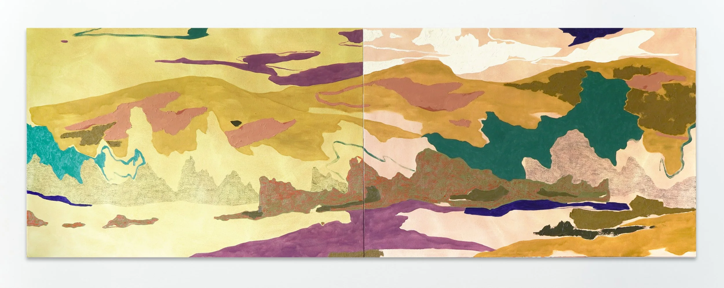 Raffael Bader: "The Hills Still Stretch Slowly (Diptych)" 110cm x 320cm courtesy of Enari Gallery