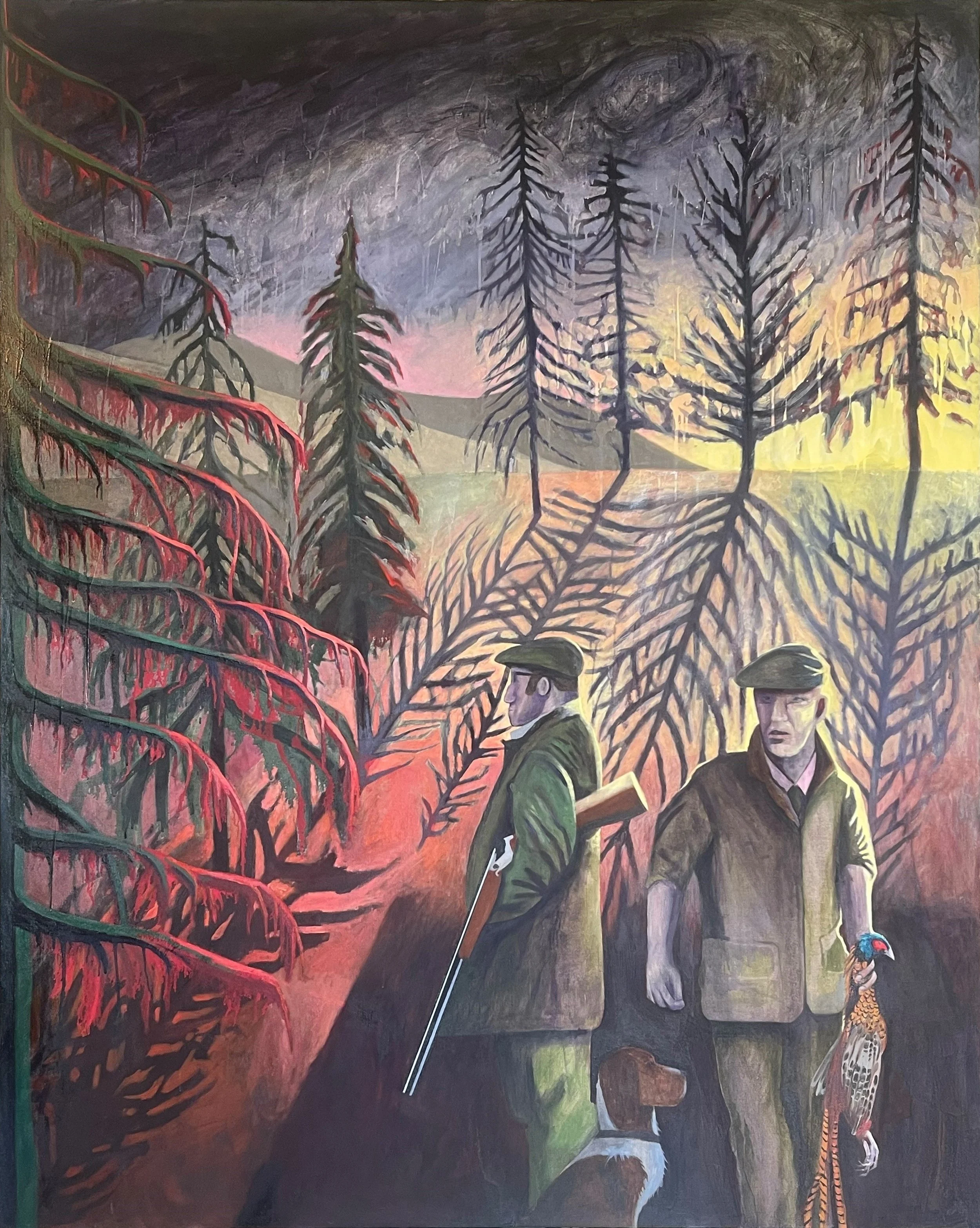 James Dearlove: "Mairches Landscape with Figures and Birds" 200cm x 160cm